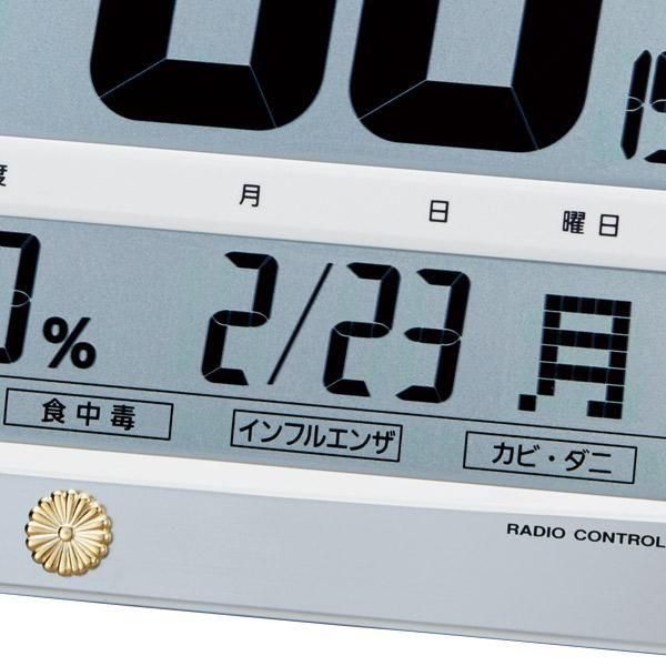 ■ 機能:電波時計。掛置兼用。12時間(午前・午後)表示・24時間表示切換式。カレンダー付(2099年12月31日まで表示可能)。温度測定精度:±1℃(-9.9〜+50℃)。湿度測定精度:±3%RH 25℃、60%RHにおいて。温度表示付(-9.9〜50℃)。湿度表示付(20〜95%)。環境目安表示付(LCD表示)。